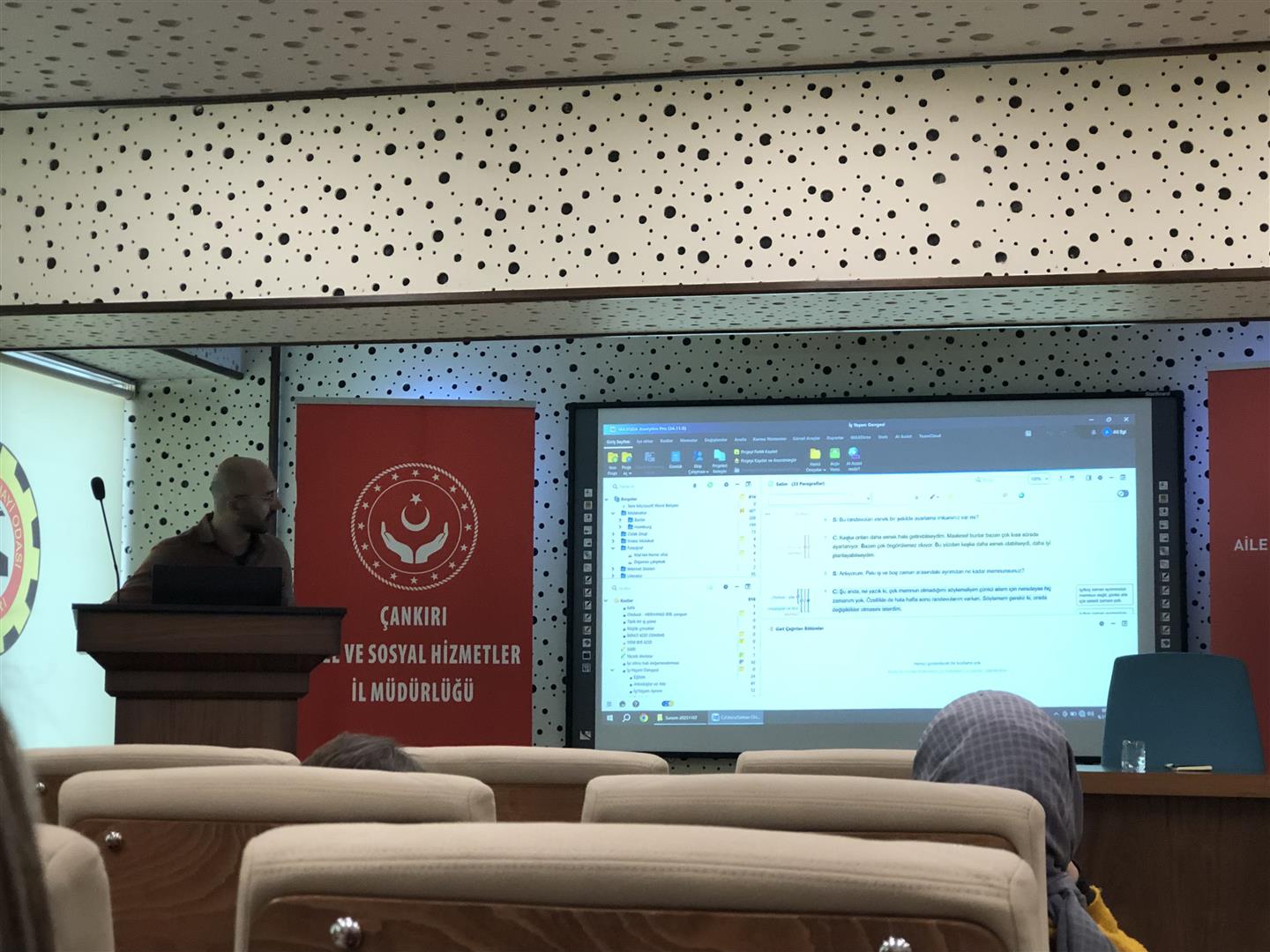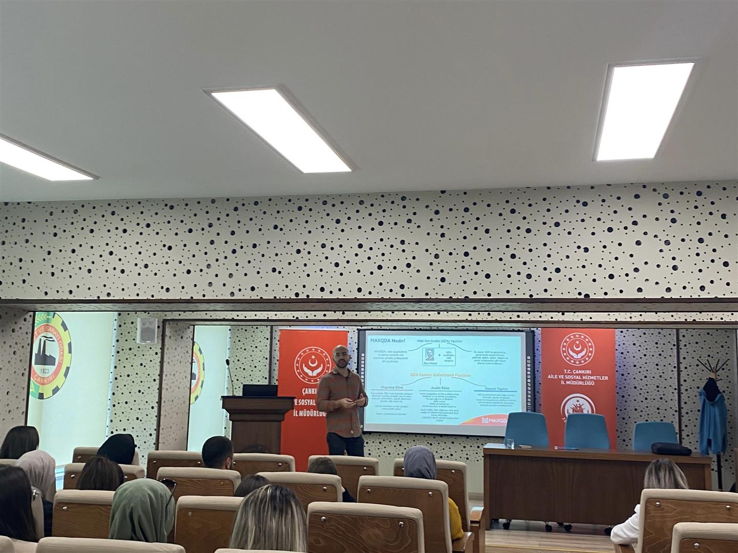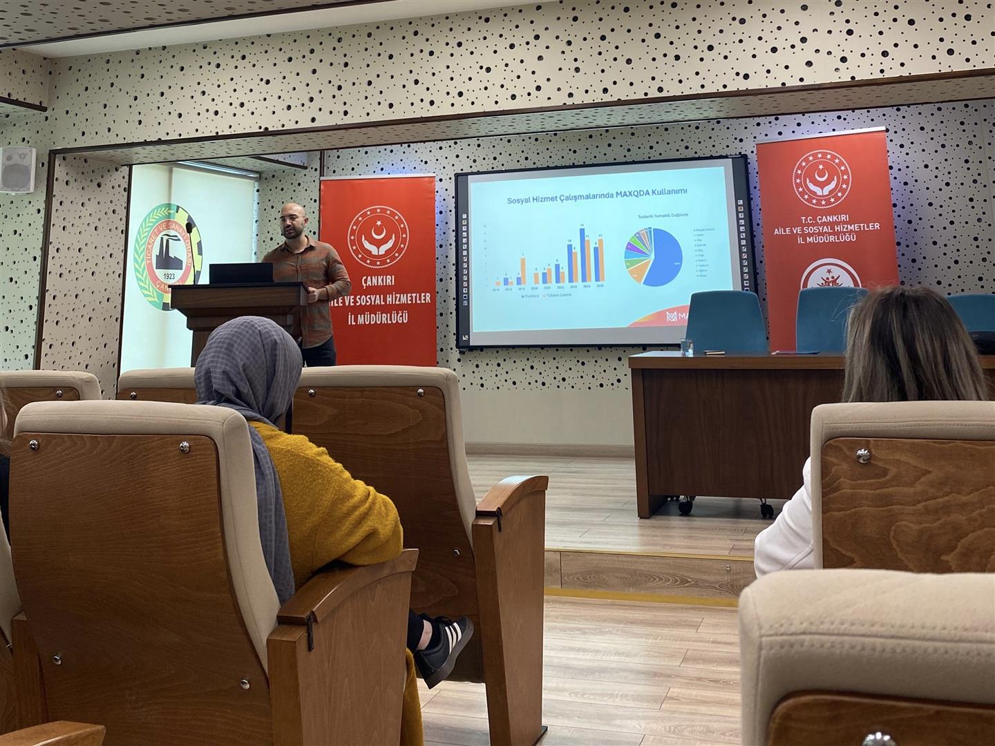 Çankırı Aile ve Sosyal Hizmetler İl Müdürlüğü personeline yönelik olarak “Sosyal Hizmet Uygulamalarında Dijital Kapasite Geliştirme: MAXQDA ile Nitel Veri Analizine Giriş” başlıklı hizmet içi eğitim 06 Kasım 2025 tarihinde 09:00-12:00 saatleri arasında Çankırı Ticaret ve Sanayi Odası Konferans Salonu’nda gerçekleştirildi.