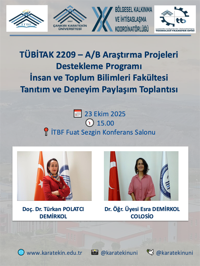Toplantıda TÜBİTAK 2209-A ve 2209-B programlarının içeriği, başvuru süreçleri ve proje hazırlama deneyimleri paylaşılacaktır.